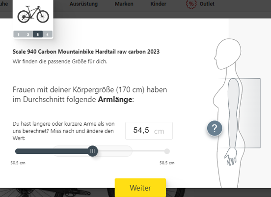 Du möchtest Dein Traumbike online kaufen, bist jedoch unsicher, welche die richtige Rahmengröße ist? Kein Problem! Entdecke jetzt unser neues Feature im Sport Bittl Online-Shop – die Größenberechnung mit Smartfit! Mit nur wenigen Klicks kannst Du die ideale Rahmengröße für Dein neues Bike ermitteln – und das ohne großen Aufwand.