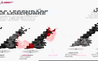Der Hawx Magna mit seiner weiten Passform hat am Vorderfuß 102 Millimeter breite Leisten (in Größe MP 26/26,5). Dieser breiter geschnittene Skischuh richtet sich an Skifahrer mit breiteren Füßen und Waden.