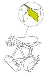 Bei dieser Konstruktion wird das tragende Gurtband durch ein Polster aus 3D-Mesh ergänzt. Dies erhöht den Tragekomfort maßgeblich. Das Hüftpolster ist über das tragende Band verschiebbar. So werden bei jedem Taillenumfang ein zentrierter Einbindepunkt und symmetrisch angeordnete Materialschlaufen garantiert. Verstürzte Kanten an der Hüftgurtoberkannte verhindern Druckstellen und erhöhen den Hängekomfort.