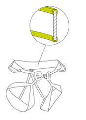 Das Einfassband ist dabei durchgehend, bildet also eine Sicherungsschlaufe um Hüfte und Beine. Die Last wird dabei über die Bänder anteilig auf die Polsterung übertragen. Kombiniert mit einem gestanzten Schaum-, Netzgewebe lassen sich extrem leichte Gurte mit einer hohen Luftdurchlässigkeit realisieren. Edelrid setzt diese Technologie vor allem bei seinen ultraleichten Sport-, und Skitourengurten ein.